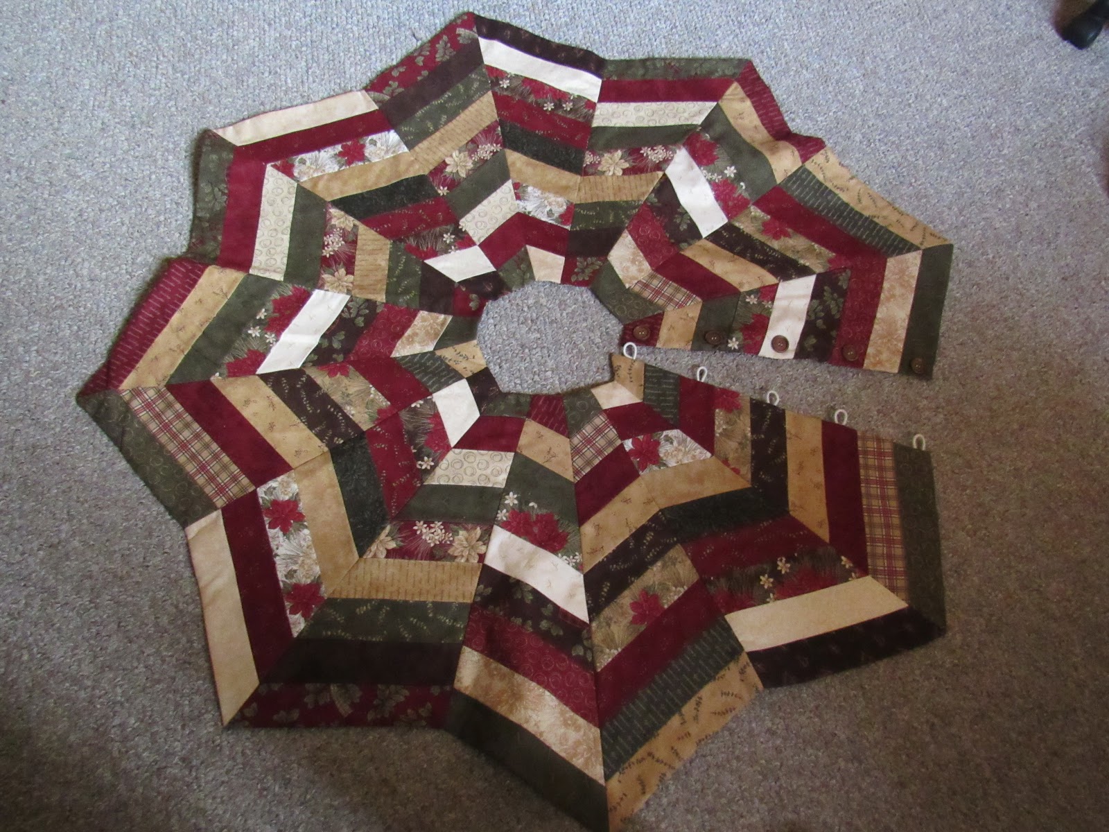 Here is the completed tree skirt that I quilted. I just love this and will be making more of these as I still put up more than one tree in our home. We have a tree in each of the bedrooms, and one in the office, and a small one in the kitchen. So I need many, in different sizes for sure.